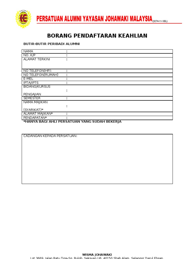 Share to twitter share to facebook share to pinterest. Nama penuh seperti dalam kad pengenalan. Parti keadilan rakyat no pendaftaran 1067/90 (wilayah persekutuan) borang permohonan keahlian (sila isi menggunakan huruf besar sahaja) negeri bahagian butir peribadi nama penuh alamat no. Bayaran rm 102 secara online(paypal, kad debit, kad kredit) bagi yuran sekaligus dan daftar terus. Savesave borang keahlian pkgm for later.