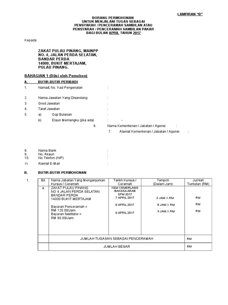 Lampiran b borang tuntutan penceramah.