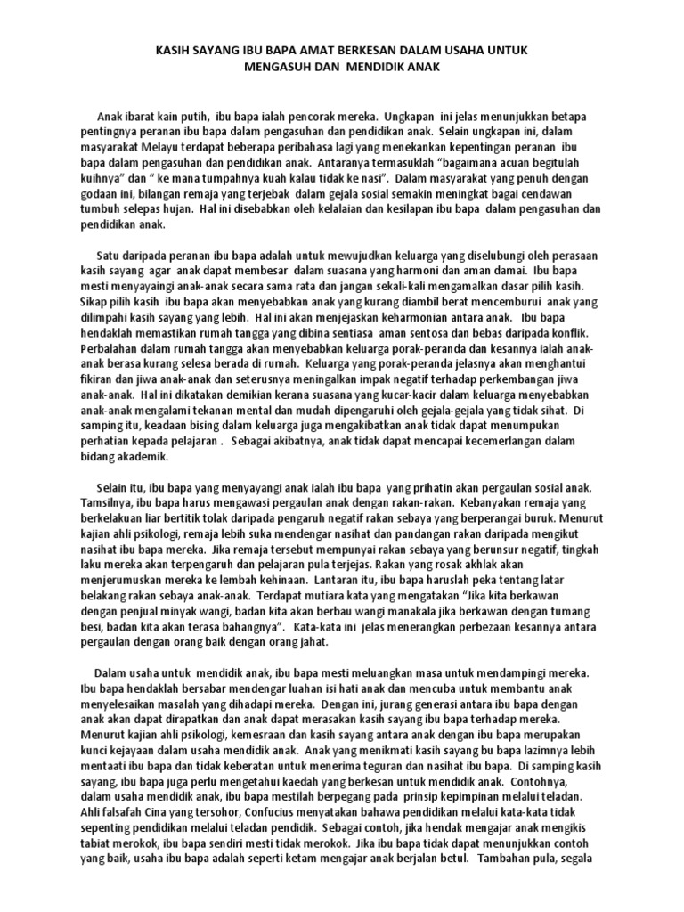 Karangan Spm Docx from imgv2-2-f.scribdassets.com Kucing punya caranya sendiri dalam menunjukkan kasih sayangnya kepada kita, menurut pakar perilaku kucing rover mikel delgado. Syurga itu di bawah tapak kaki ibu. Tanpa mereka, kita tidak akan lahir ke dunia ini. Merekalah yang memberikan kita kasih sayang yang sejati hingga sanggup berkorban harta dan nyawa demi kebahagiaan kita. Sebagai contohnya, ibu bapa haruslah mengajar anak cara yang betul pada hari pertama anak mereka dibelikan telefon pintar. Ibu bapa sepatutnya mencurahkan kasih sayang dan memberikan keprihatinan kepada anak di samping sibuk mencari nafkah谋生. Learn vocabulary, terms and more with flashcards, games and other study tools. Gunakan bahasa anda sendiri untuk merangkum pesan tulus yang menunjukkan betapa besar kasih sayang anda kepada pasangan.